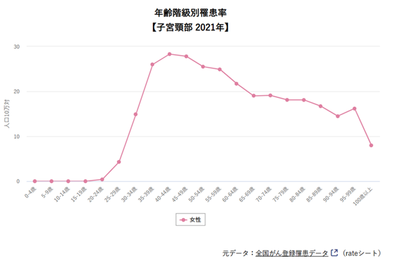 子宮頸がんの罹患率は、国立がん研究センター がん情報サービス(子宮頸部)の統計情報を見るとよくわかります。